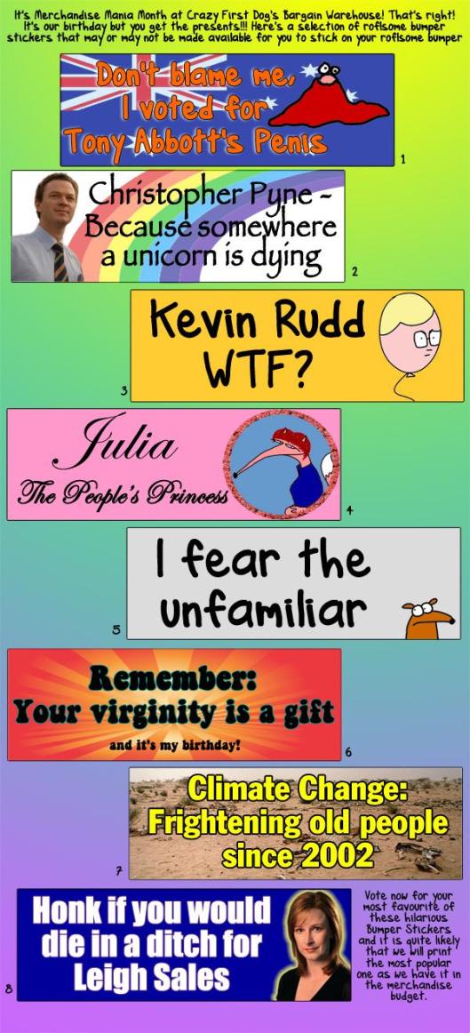 Does this bumper sticker mean that Leigh has reached the exalted status of “thinking man’s eye candy”, the object of tumescent middle aged desires? The ABC does seem to be heavily marketing the “sexiness” of its women presenters. How else to explain the meteoric rise of the journalistically challenged Annabel Crabbe who is known for not letting truth and probity get in the way of a cheap self aggrandising witticism. Of course this distracting marketing approach fits perfectly with its concomitant corporate program, the dumbing down of ABC News and Current Affairs and an abandonment of quality in the face of the need to fill all those channels and platforms with content, and all of this while free to air television is dying a slow protracted and apparently painful death from lack of interest. If you can’t afford to broadcast quality programming, sell sex instead.