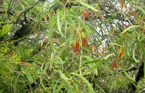Photo Credit: (Source: http://www.northqueenslandplants.com/Lysiana/exocarpi.html) Lysiana ssp.exocarpi: Host plant-Exocarpus cuppressoides Location: Inman Valley