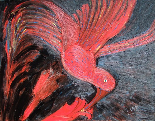 Gosh that’s a gorgeous red. If I were to name the mood the painting conveys to me, it would be a kind of hopeful anxiety.