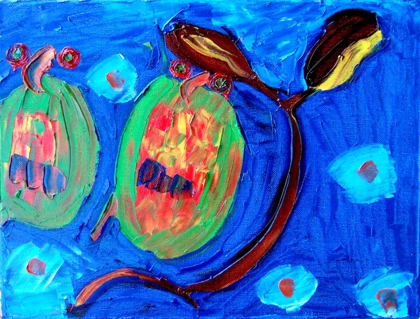 I saw two rainbow lorikeets in the tree at the top of the yard. This tree had hard brown pods, and one had opened. They were both standing on the branch next to the pod. One of them would reach into the pod and pull out the seed. It was a flat round seed encased in a piece of translucent paper-like material.  The lorikeet would give the seed to the other lorikeet, who would nibble at it and then let it go, and it would float down like a large snowflake through the yard. Then it would take one for itself, then it would give another one to its mate. They did that until the pod was empty. What a lovely partnership, I thought. Ecology, tenderly.