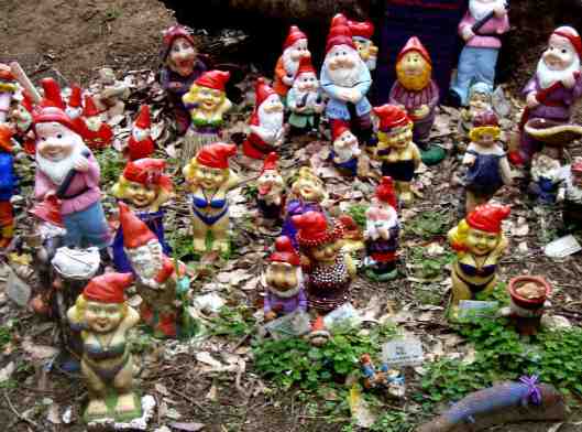 Ah, Waz. Parallel lives. In my final undergrad year at Sydney, I was on the Uni Farms at Camden. We had a ritual where we gnome-napped the good burghers’ concrete offerings and installed them on the wide median strip of the main street of the town. The ritual went on, as you say until there were many ute-removed little folk. Then we retired to the pub, had a rather large skinful and returned to the main street to watch mums and dads pick up their little coloured kin. Not easy in the throng. People took it rather well, I think.