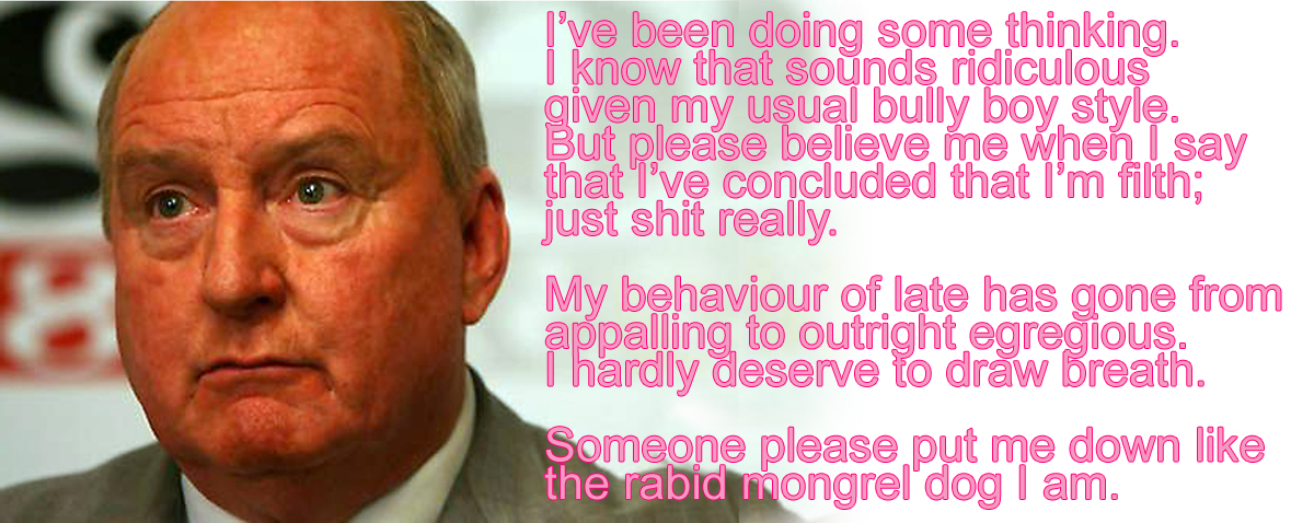 Alan Jones contract with 2GB includes millions of share options that are now truly and well out of the money. Let’s pray he’ll die destitute with salvation army soup for a last meal.