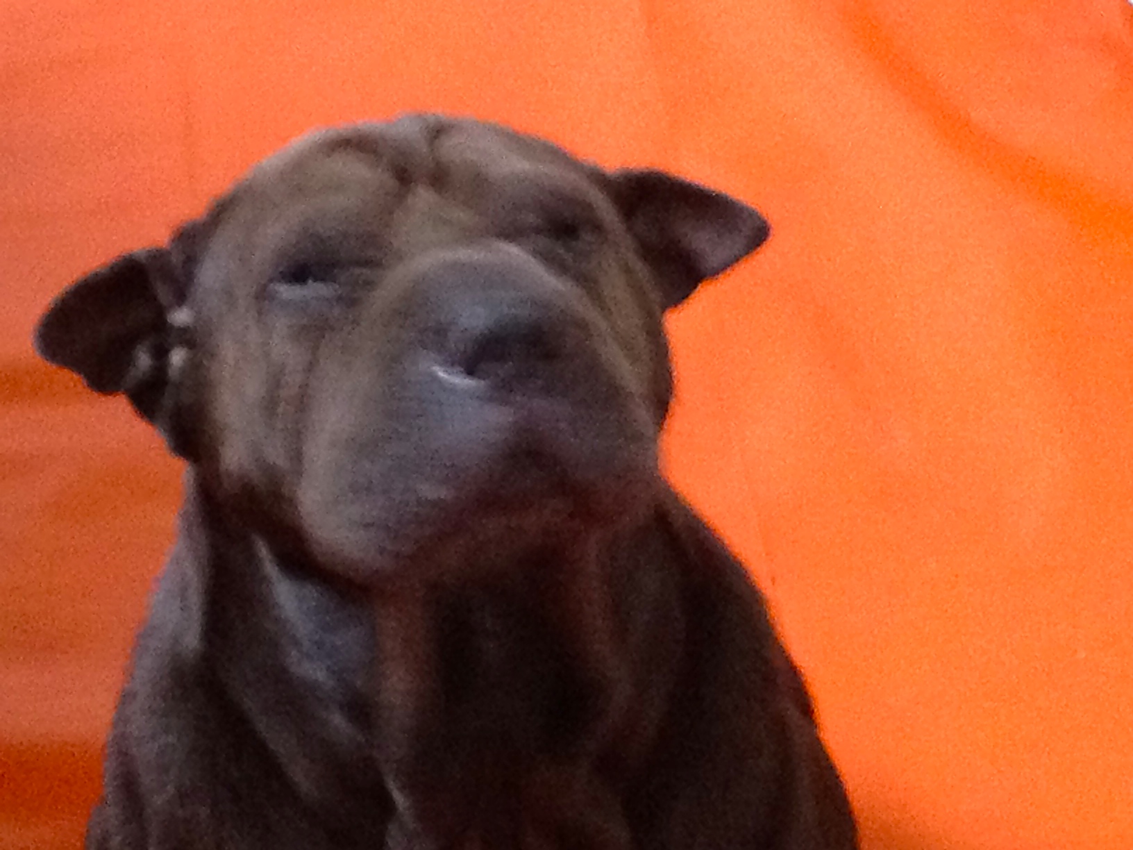 FM tells me, Big, that Shar-peis were originally bred to guard flocks by night, but we seem to be guarding the Shar-pei. We bought her a flashing collar light so she’s more visible during walkies.