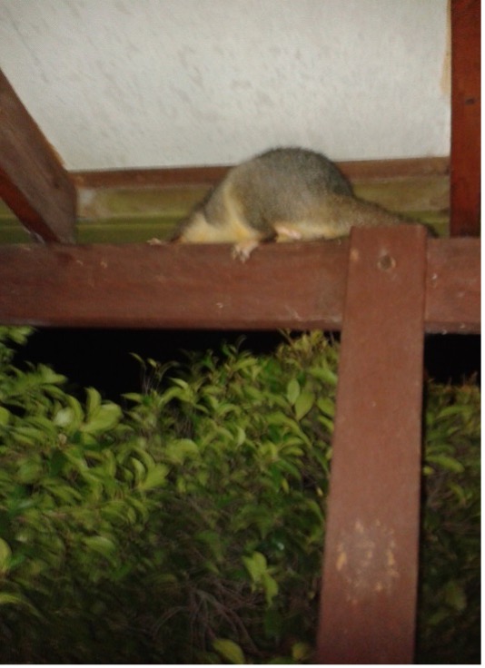 I managed to get this photograph when I saw him on the verandah – I shot up and put the outdoor light on and caught him frozen on the rafter pretending he wasn’t there.