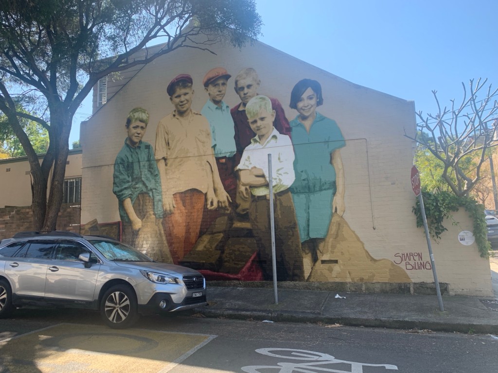 Sharon Billings uses old black and white photos, colourised and blown up a million times to celebrate Inner West life back in time.