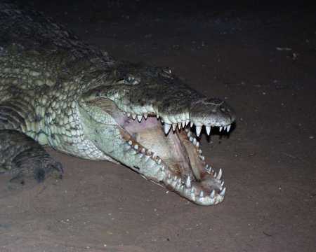 “Oh no, bwana,” Kwaku says laughing. “Wolfgang left in his boat this morning. We will go in my boat. This boat is good luck, bwana. We will catch a big fish today. I climb perilously into Kwaku’s boat and help load in supplies. Along with the African camp lunches – which always seem to consist of a salami sandwich with lettuce, cheese and cucumbers, one boiled egg and one whole tomato – Kwaku hands me a large leather pouch full of water, a crate of already warm beer, a couple of hand lines, a landing hook, a bucket of fish guts, and some bait. I note that there are no life-jackets on board and only one oar. I settle into a position at the bow of the boat while Kwaku pushes away from the shore and primes the tiny, ancient outboard. He wraps his hand around the knotted cord and standing, but almost bowed in prayer, gives the starter a mighty yank. A cough is all the outboard is willing to offer in response. Another bow from Kwaku and then with one hand on the outboard for support he gives the engine another violent tug. Nothing.