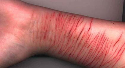 Editor’s note: A friend told me an horrendous story that he was working at a client’s office last summer on one of the rare hot days and he noticed one of the young women in his area was wearing a cotton top with long sleeves. When he said “Isn’t it a bit hot today for long sleeves?” she became somewhat flustered by the comment and insisted that no, she was fine. During the exchange he noticed that the sleeves of her shirt had several spots that looked a lot like blood stains. He later found out from another young woman that the first girl had for some months been cutting her own arms with a razor blade.