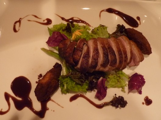 Cut duck up into quarters or carve if you prefer.  Carefully share out the sauce for each serving.    Make your plate look nice and have an appropriate good wine to accompany (my favourite sparkling Shiraz-Durif goes down particularly well).