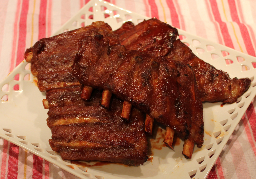 The trick to this dish is finding the right spare ribs.  I really do mean RIBS – they don’t have a lot of meat on them so you need to be fairly discerning in picking out the best.  My butcher doesn’t have them but I usually find them at the Safeway meat section.  Ridiculously expensive at $5-7 for just one slab of them.  To feed four people I need five or six packets.