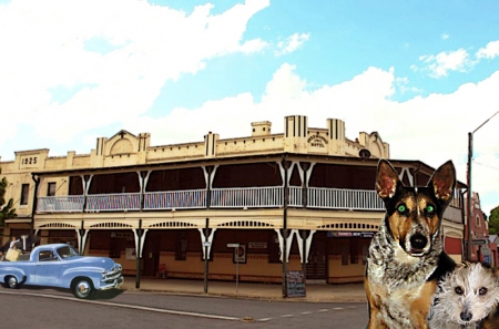…and there was a picture of Mongrel and The Runt sitting on the hospital verandah looking straight at the camera. When had that been taken? The caption read, “Popular local canine identity “Mongrel” and his inseparable companion “The Runt” wait for news of the dogcatcher’s recovery.”