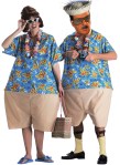 Each is wearing underpants three pair deep on the outside of their shared economy travel rocket space ship suit.
